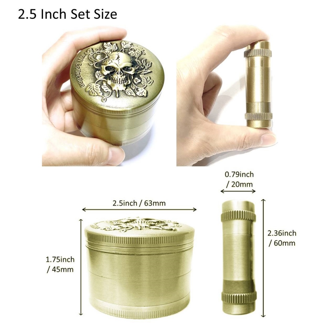 2.5″ Herb Grinder Set Skull Designed with Pollen Presser and Catcher(5 color options)