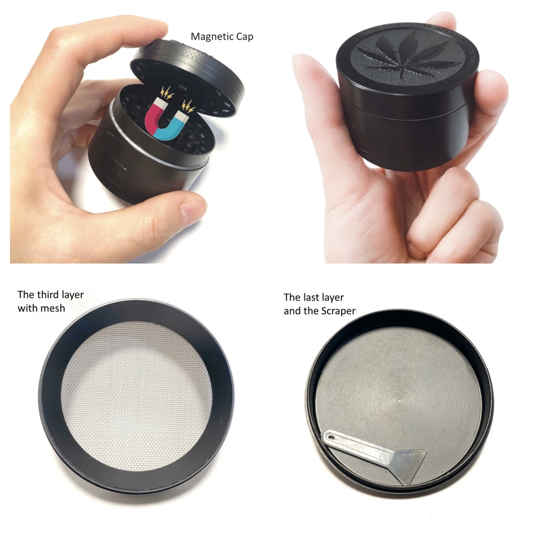 • Finer Grinding and Easy To Use: Magnetic Lids helps reduce spilling, and powerful Shaped Sharp Teeth makes your grinding more consistent and smooth. Large Chamber could grind more at once. Zinc Alloy Chamber come with little scraper inside, simply twist and turn.